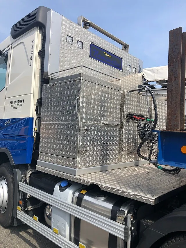 材木運搬車、活魚車、冷蔵冷凍車、平ボディなどすでに様々な架装車が日本の物流で活躍しています。
