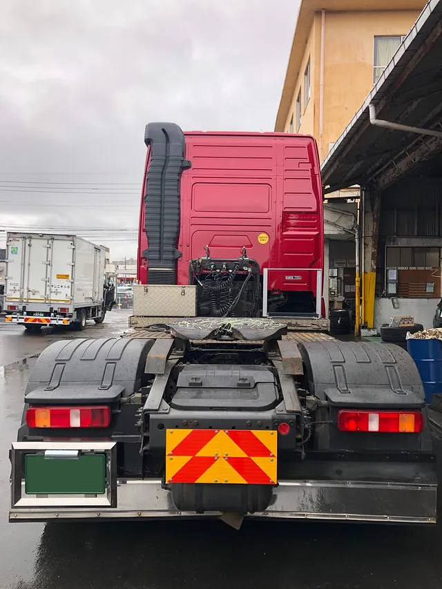 シングルヘッドはスライドカプラ標準装備で第五輪荷重11.9t、馬力は450馬力ですがトルクは他メーカーを凌駕する2350トルク(最大トルク回転数1000~1300)。